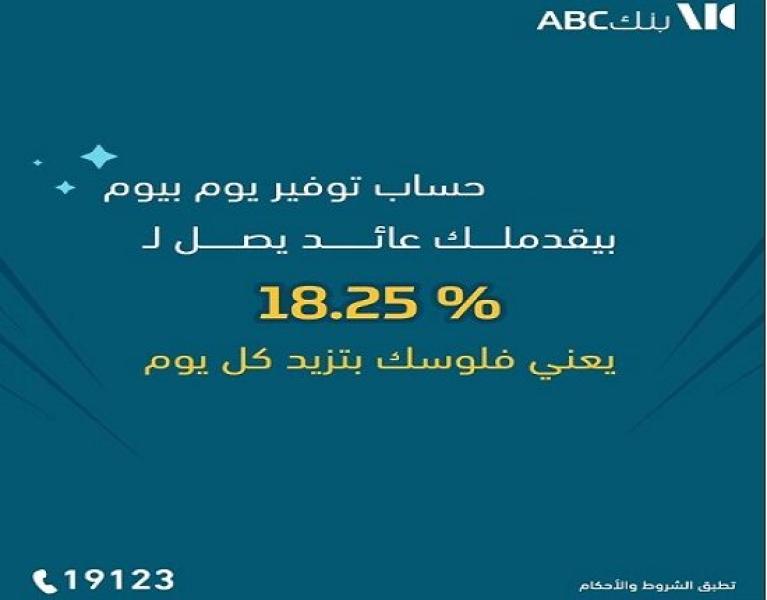 كشف بنك ABC مصر عن تعديل سعر العائد على حساب التوفير «يوم بيوم» ليصل إلى 18.25% سنوياً يُصرف شهرياً.