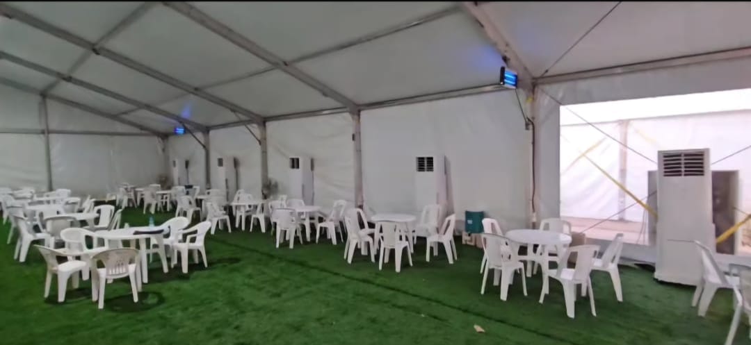 وأوضح اللواء أن الخيام مزودة بـ صوفا بد لتوفير راحة أكبر للحجاج داخل المخيمات.