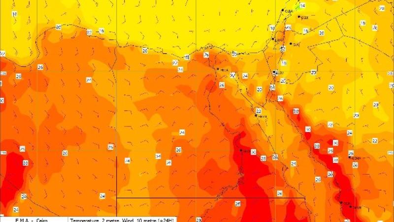 يتوقع خبراء هيئة الأرصاد الجوية أن يسود اليوم الجمعة طقس شديد الحرارة رطب نهارا على القاهرة الكبرى والوجه البحري وجنوب سيناء وجنوب البلاد، حار رطب على السواحل الشمالية، حار رطب ليلا على أغلب الأنحاء.