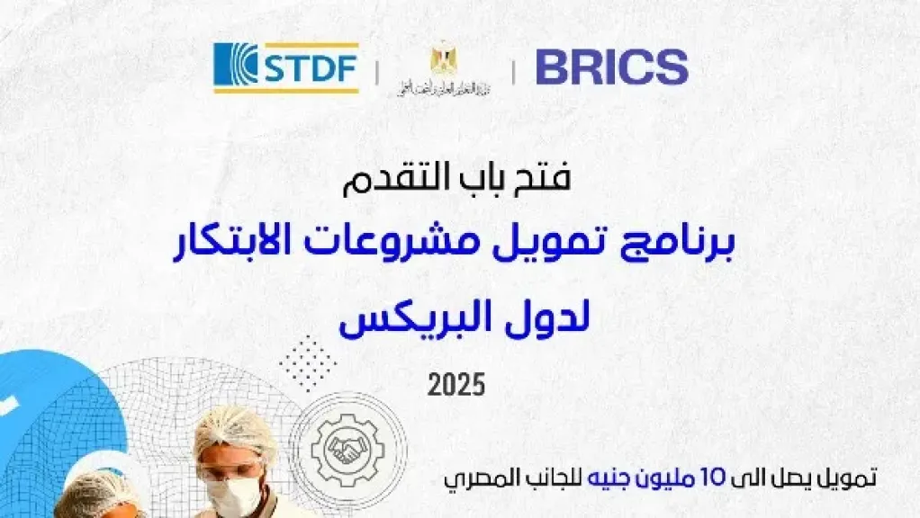 في هذا الإطار، تعلن هيئة تمويل العلوم والتكنولوجيا والابتكار (STDF) عن فتح باب التقدم للنداء الأول من برنامج تمويل مشروعات الابتكار لدول البريكس ٢٠٢٥، والذي يهدف إلى تمويل مشروعات ابتكارية متعددة الأطراف تدعم التعاون الدولي بين الباحثين والمؤسسات الأكاديمية والصناعية، وتسعى إلى نقل نتائج البحث العلمي إلى التطبيق العملي، على أن تشمل النتائج المتوقعة نموذجًا أوليًا أو نظامًا يتم اختباره في بيئة تشغيلية.