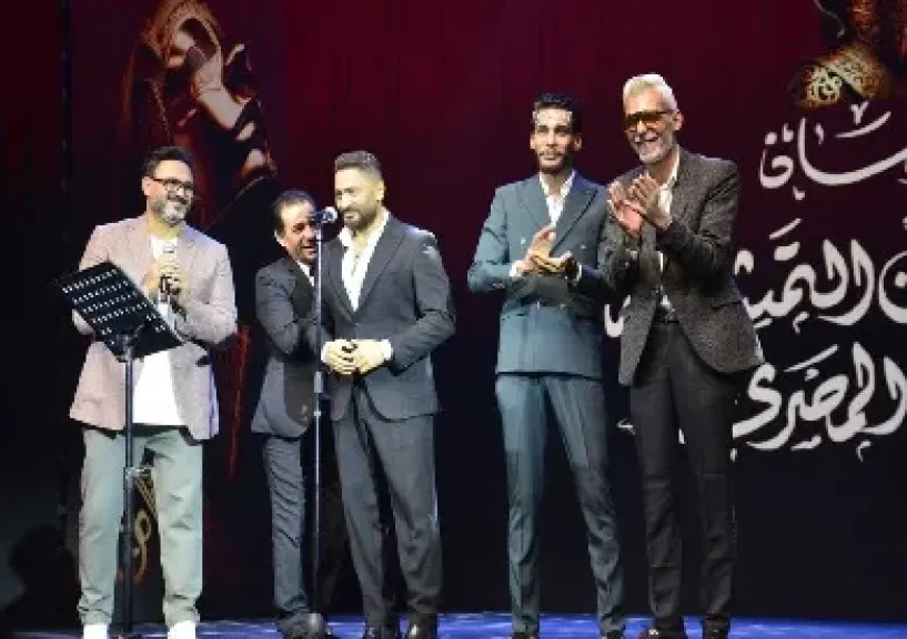 وشهد مسرح "جراند نايل تاور" مساء السبت، خلال حفل افتتاح الدورة الثامنة من المهرجان برئاسة الدكتور أشرف زكي، مظاهرة حب وتكريم لرموز المسرح المصري من يعقوب صنوع إلى سمير غانم ومحمد صبحي وعادل إمام، وذلك عبر الأغنية التي قُدمت ثلاث مرات متتالية: الأولى في صورة كليب بتقنيات الذكاء الاصطناعي جمع تامر بنجوم المسرح، ثم قدمها مباشرة أمام الجمهور، قبل أن يعيد غناءها بمشاركة أكثر من 500 ممثل وممثلة من شباب الفرق المسرحية المشاركة.