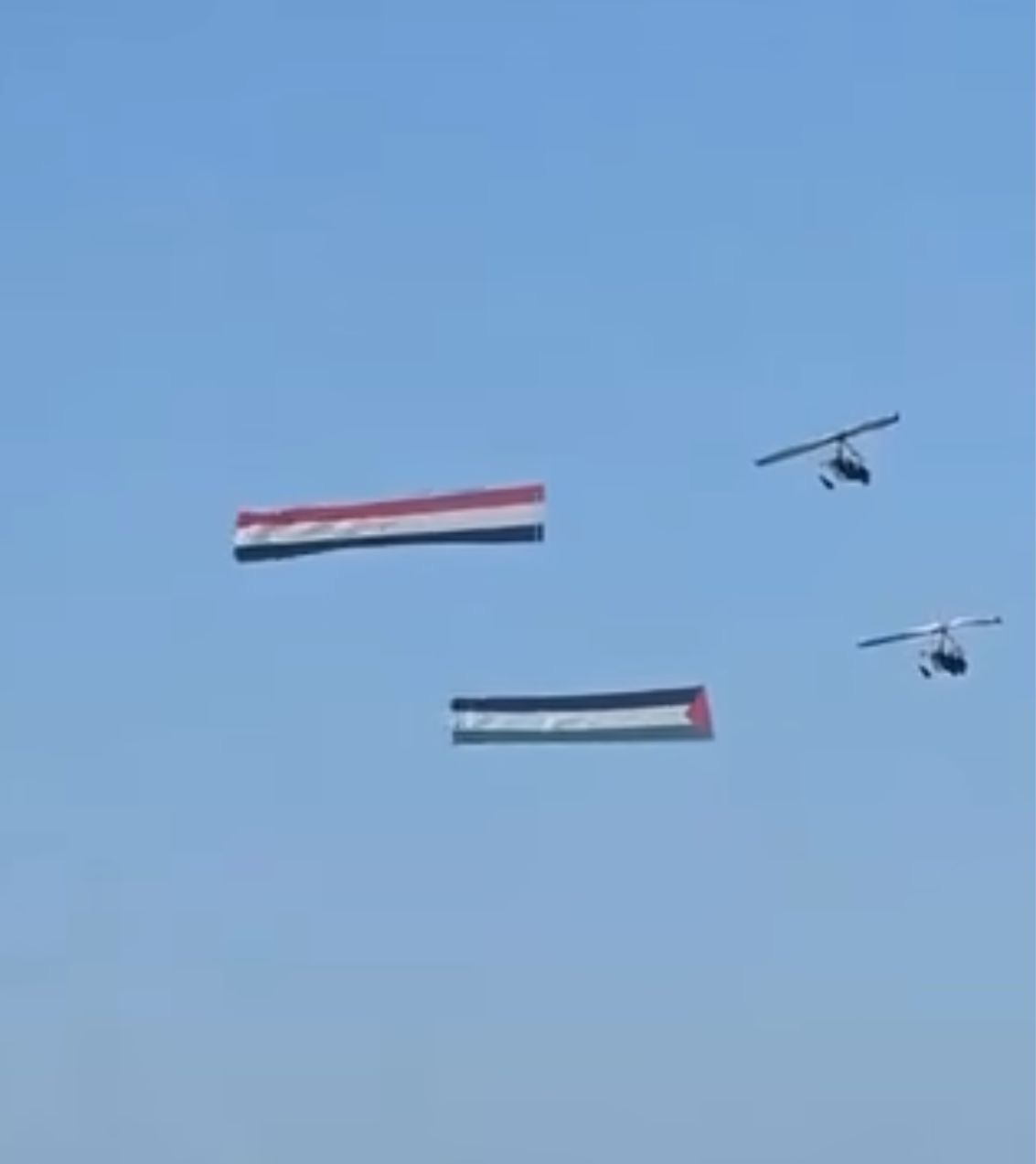 احتفالا بانتهاء الحرب.. علم فلسطين يرفرف بجانب علم مصر في سماء شرم الشيخ