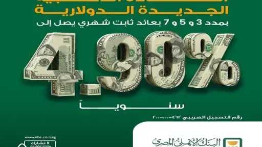 طرح البنك الأهلي المصري شهادة ادخار جديدة بالدولار تحت مسمى “الشهادة الذهبية الدولارية” بمدد 3 – 5 – 7 سنوات، وبعائد ثابت شهري يصل إلى 4.90% سنويًا.