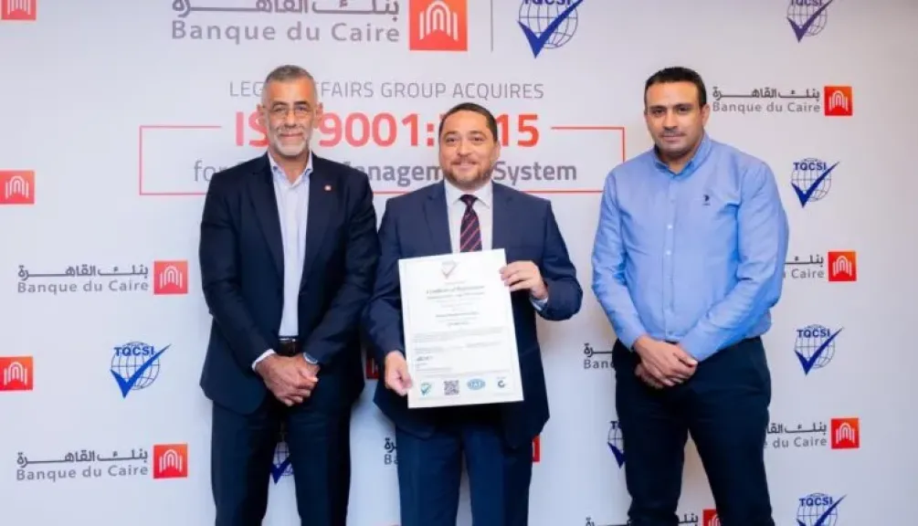 في إنجاز جديد.. بنك القاهرة يحصل على شهادة الأيزو في نظام إدارة الجودة لمجموعة الشئون القانونية