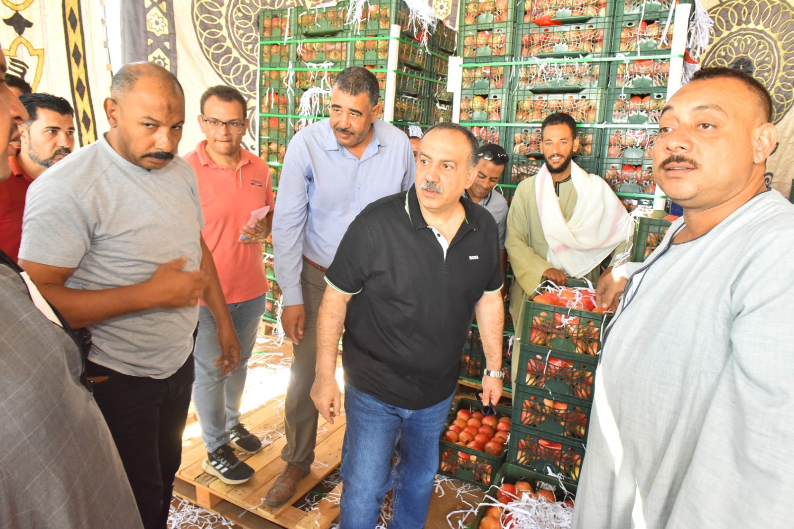 رافق المحافظ خلال الجولة عبد الرؤوف النمر، رئيس مركز ومدينة البداري، والدكتور عبد الرحيم وكيل وزارة الزارعة وعبداللطيف عبدالمنعم رئيس مركز ومدينة ساحل سليم وعدد من قيادات المحافظة والمصدرين والمزارعين، حيث التقى بمجموعات من المزارعين وأصحاب مراكز التصدير، واستمع إلى آرائهم ومقترحاتهم حول سبل تطوير زراعة وتصدير الرمان ورفع القدرة التنافسية للمنتج في الأسواق الخارجية.