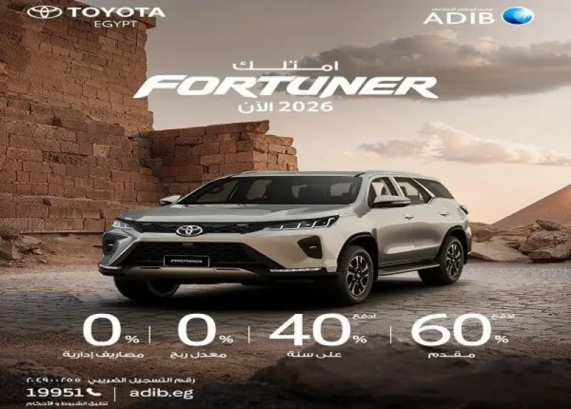 • مع ADIB-Egypt يمكنك اقتناء سيارات “تويوتا فورتشنر& اربن كروزر” من تويوتا مصر بالتقسيط بمعدل ربح 0%.