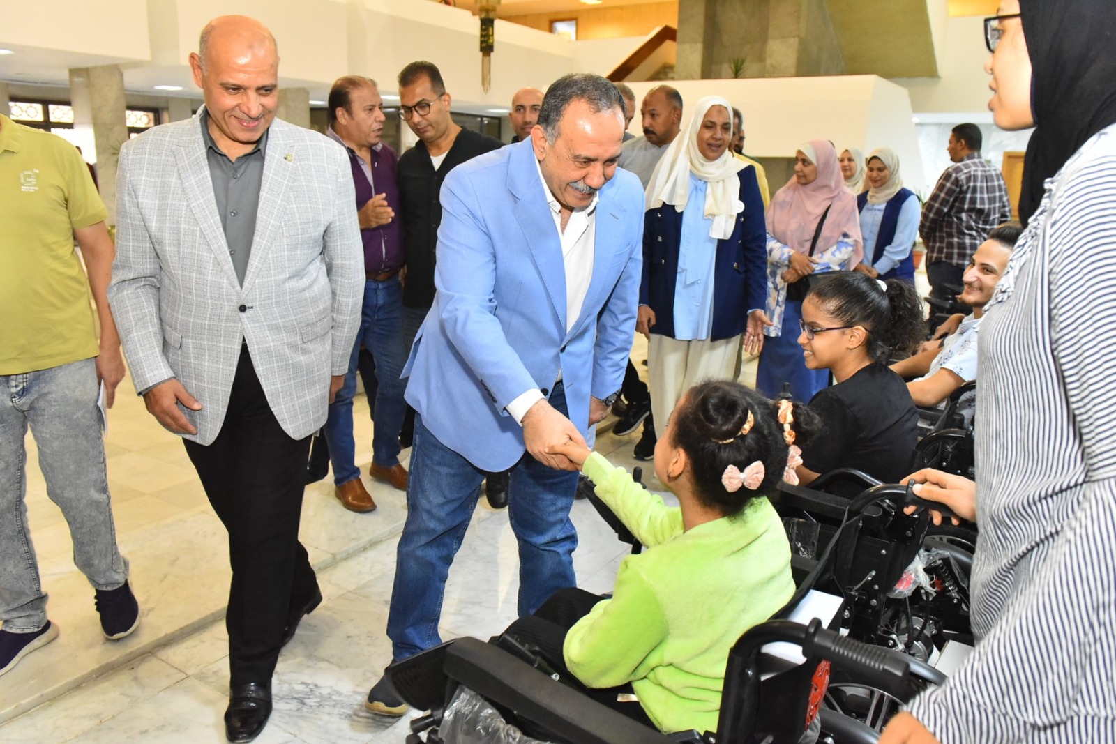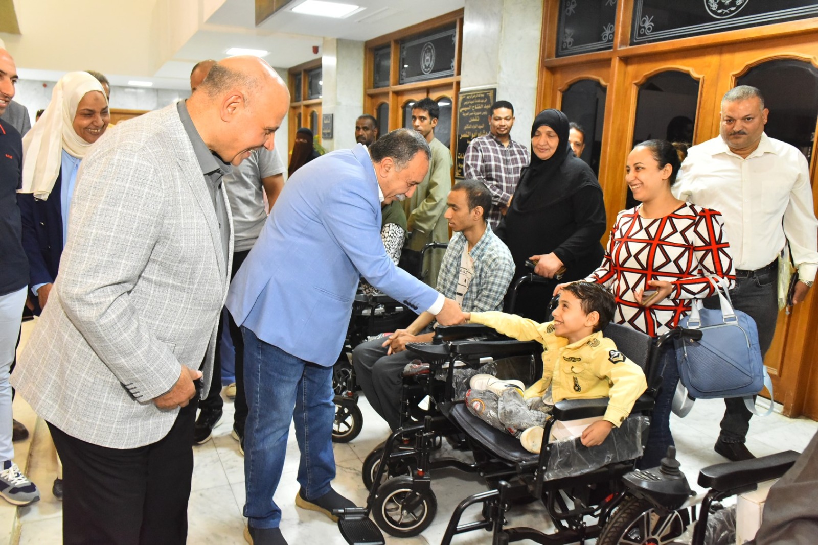 محافظ أسيوط يسلم كراسي كهربائية وماكينات خياطة لذوي الهمم والسيدات المعيلات