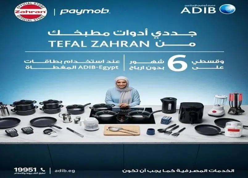 مصرف أبوظبي الإسلامي مصر يتيح تقسيط المشتريات من Tefal Zahran على 6 أشهر بدون أرباح