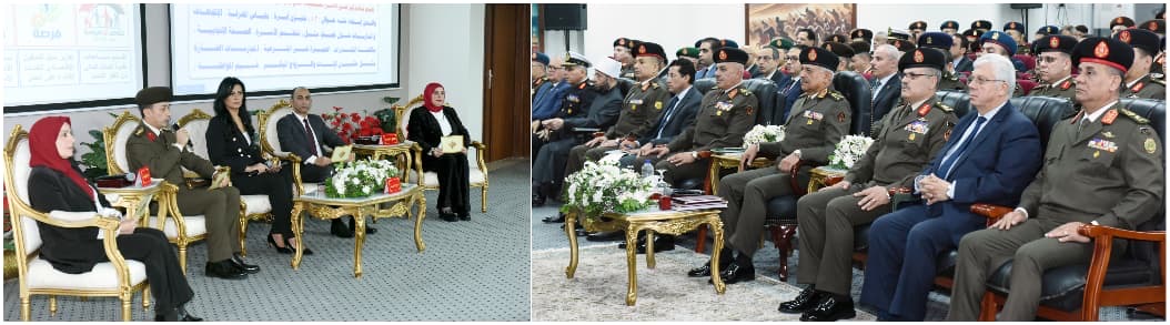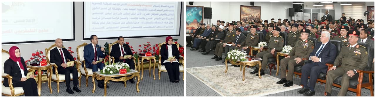 شهد الفريق أول عبد المجيد صقر القائد العام للقوات المسلحة وزير الدفاع والإنتاج الحربي مناقشة البحث الرئيسي للأكاديمية العسكرية للدراسات العليا والاستراتيجية بعنوان "إستراتيجية مقترحة لتنمية الوعى المجتمعي فى ظل التحديات والتهديدات التى تواجه الأمن القومي المصري" ، والذى نفذته كلية الدفاع الوطني، وذلك بحضور الفريق أحمد خليفة رئيس أركان حرب القوات المسلحة وعدد من الوزراء وقادة الأفرع الرئيسية وعدد من قادة القوات المسلحة ورؤساء الجامعات والإعلاميين والشخصيات العامة.