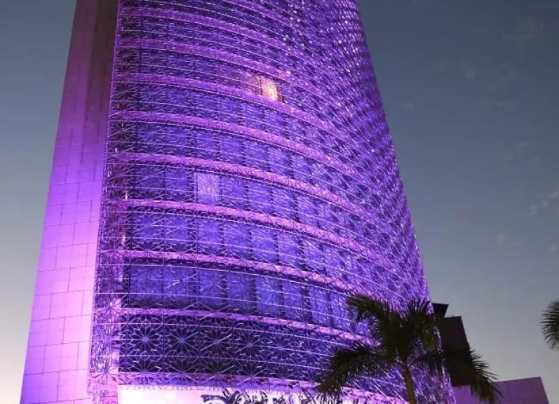 السفارة السعودية بالقاهرة تضيء مبناها باللون اللافندر دعماً لمبادرة (10KSA)