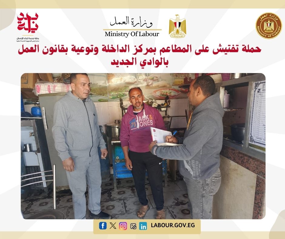 حملة تفتيش على المطاعم بمركز الداخلة وتوعية بقانون العمل بالوادي الجديد