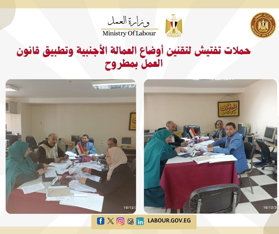 حملات تفتيش لتقنين أوضاع العمالة الأجنبية وتطبيق قانون العمل بمطروح