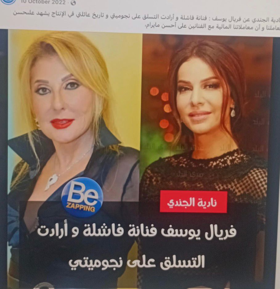 وطلب حافظ عقابها عملاً بنصوص المواد ٣/١٧١، ١/٣٠٢، ٣٠٦ من قانون العقوبات و المادة ٢٦ من القانون رقم ١٧٥ لسنة ٢٠١٨ بشأن قانون جرائم تقنية المعلومات لقيامها بقذف الفنانة فريال يوسف والتشهير بها.
