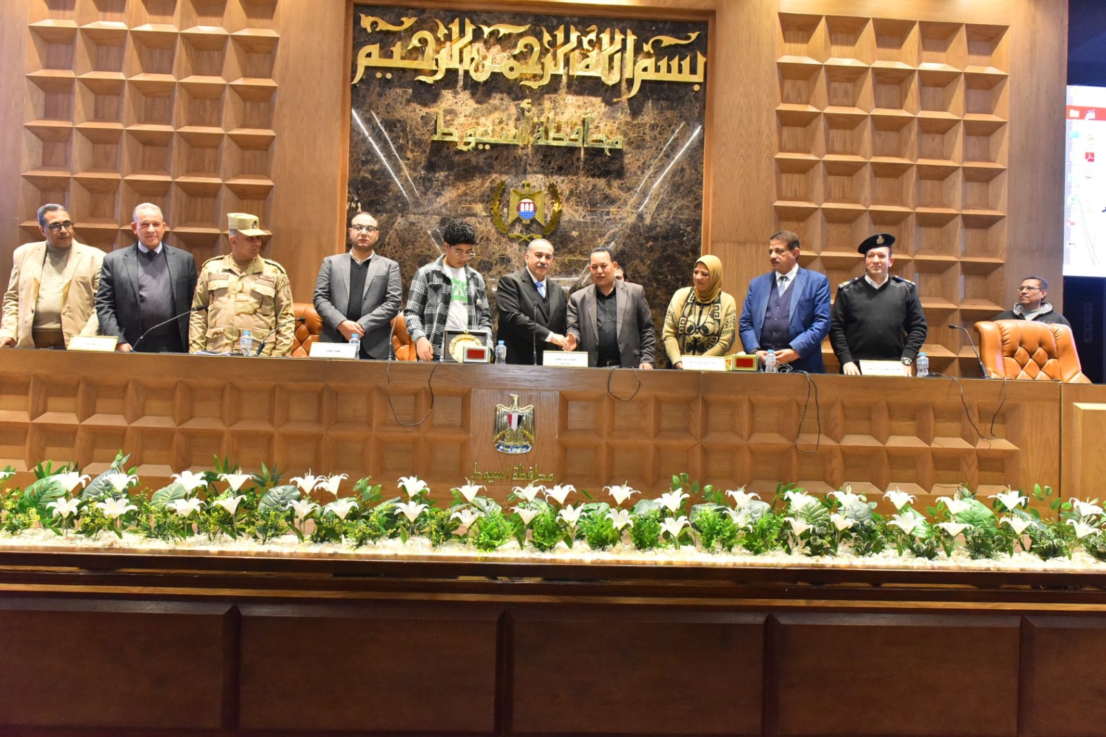 كرم اللواء دكتور هشام أبو النصر محافظ أسيوط اثنين من أبناء المحافظة من الطلاب المتميزين، تقديرًا لتفوقهما وحصولهما على مراكز متقدمة في مسابقات وطنية ودولية بمجالات الابتكار وتكنولوجيا المعلومات، وذلك خلال انعقاد جلسة المجلس التنفيذي للمحافظة بحضور الدكتور مينا عماد نائب المحافظ، والمحاسب عدلي أبو عقيل السكرتير العام، واللواء إسماعيل حسين مستشار المحافظ لشئون المكتب الفني، واللواء محمد عصامي مساعد مدير الأمن، والعميد أركان حرب هاني محمد الفاروق المستشار العسكري للمحافظة إلى جانب أعضاء المجلس التنفيذي من وكلاء الوزارات، ورؤساء المراكز والمدن والأحياء، ومديري المديريات الخدمية، ولفيف من القيادات التنفيذية.