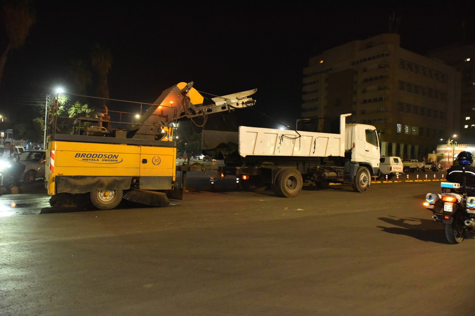 وجرى تنفيذ الأعمال باستخدام معدات الحملة الميكانيكية بحيي شرق وغرب، ووحدة الإنقاذ والتدخل السريع، والتي شملت سيارات الكنس الآلي، واللودر، والجليدر، وسيارات النقل والحاويات، بما ساهم في سرعة الإنجاز ورفع كفاءة الأداء.