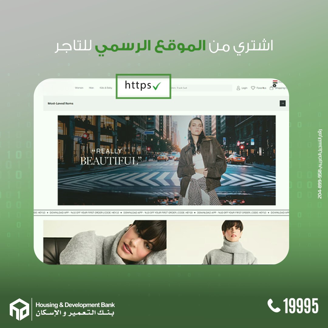 ونصح البنك عملاءه بالحذر الشديد من العروض والخصومات الوهمية ، وبتجنب فتح اللينكات الوهمية غير اللأمنة ، والحرص على تسجيل الدخول دائماً على الموقع الرسمي للتاجر ، وتحميل الطبيقات الرسمية من google play ، app store .