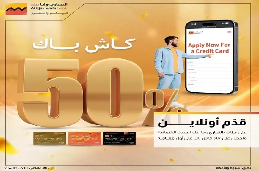 التجاري وفا بنك يتيح 50% كاش باك على أول معاملة عند التقديم على بطاقات الائتمان أونلاين
