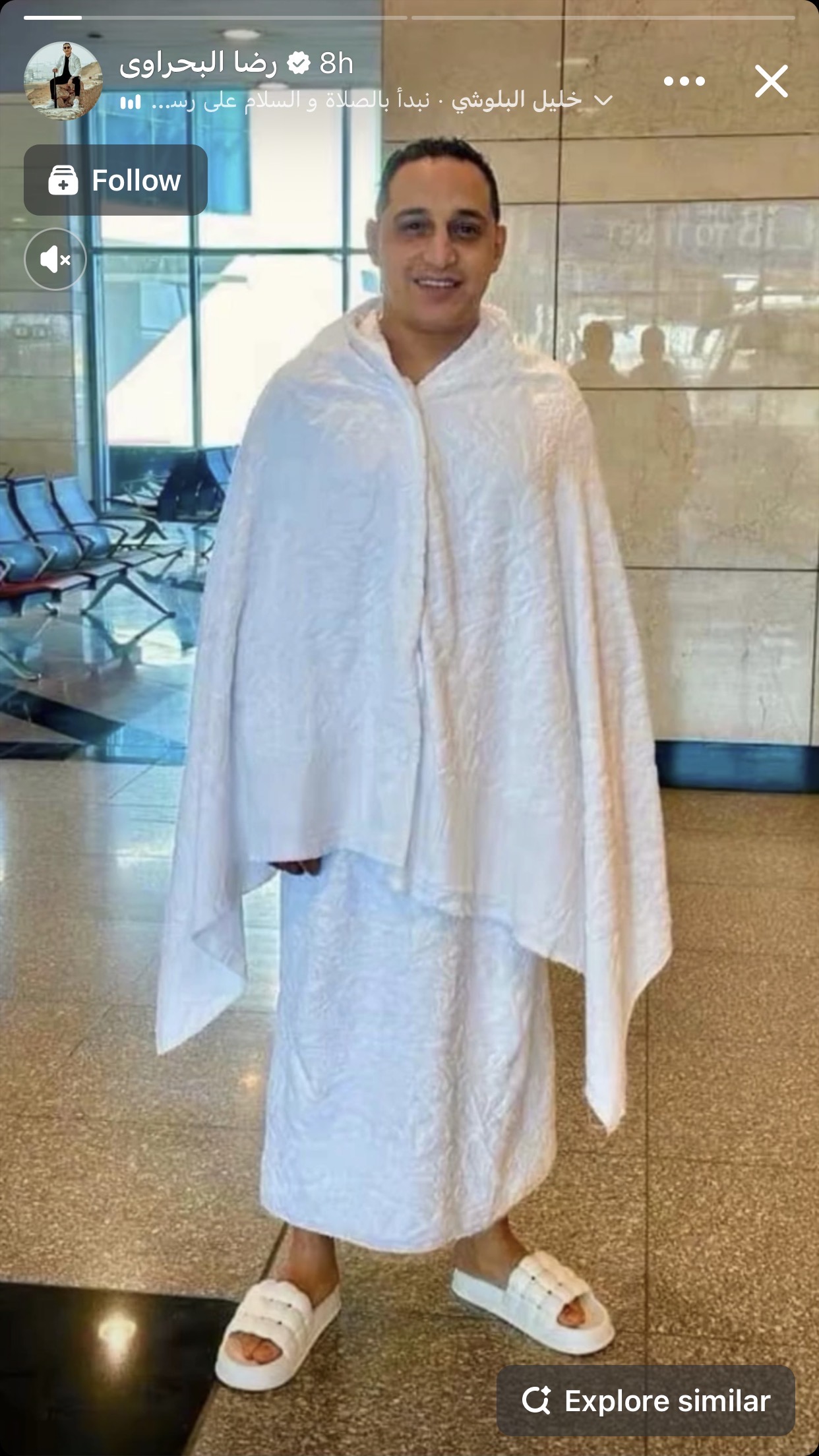 أدى المطرب الشعبي رضا البحراوي مناسك العمرة، وحرص على مشاركة جمهوره مقاطع فيديو أثناء أدائه الطواف أمام الكعبة المشرفة.
