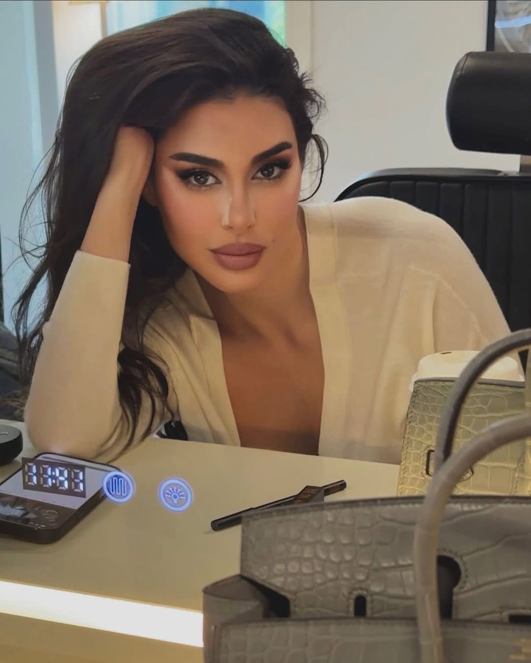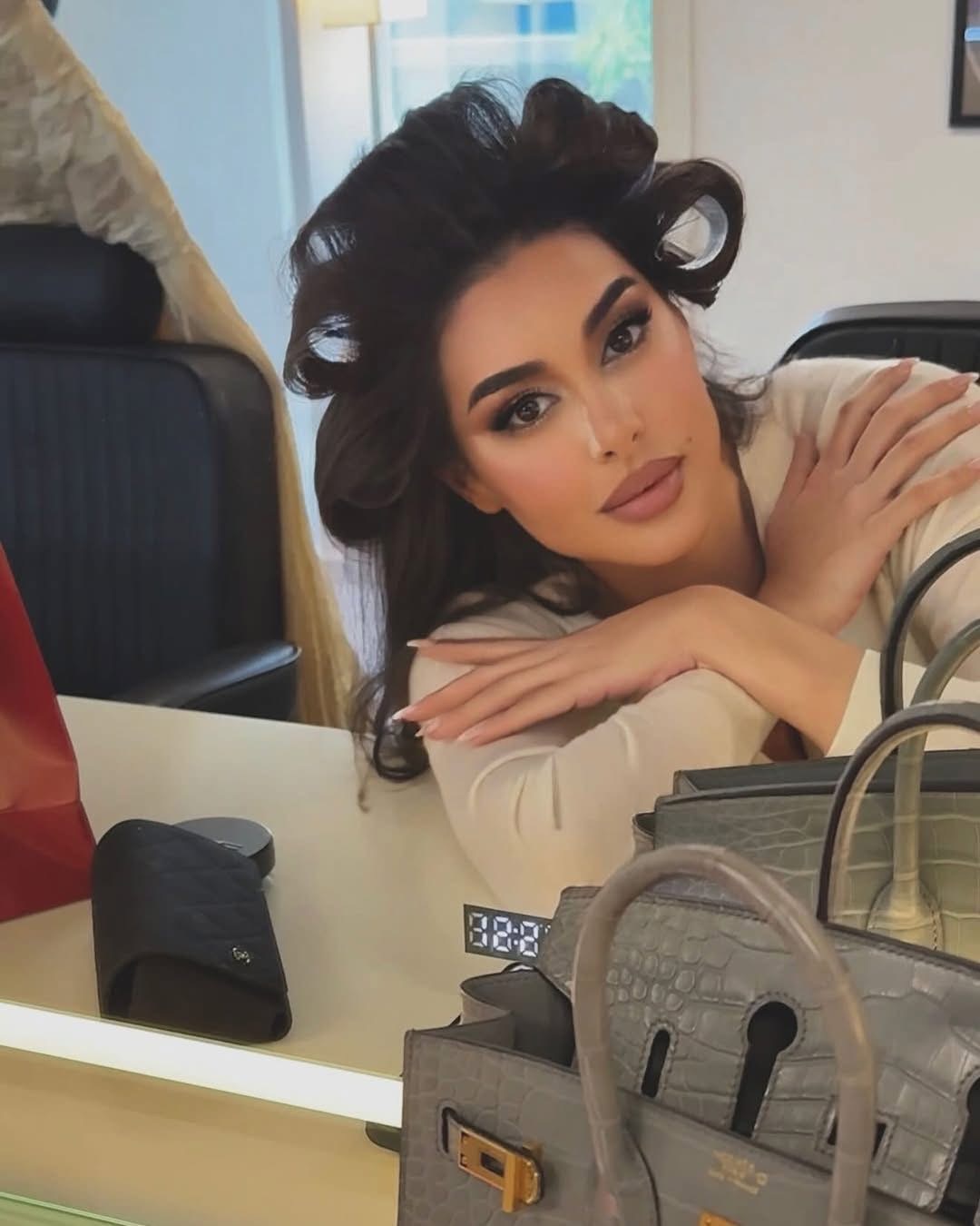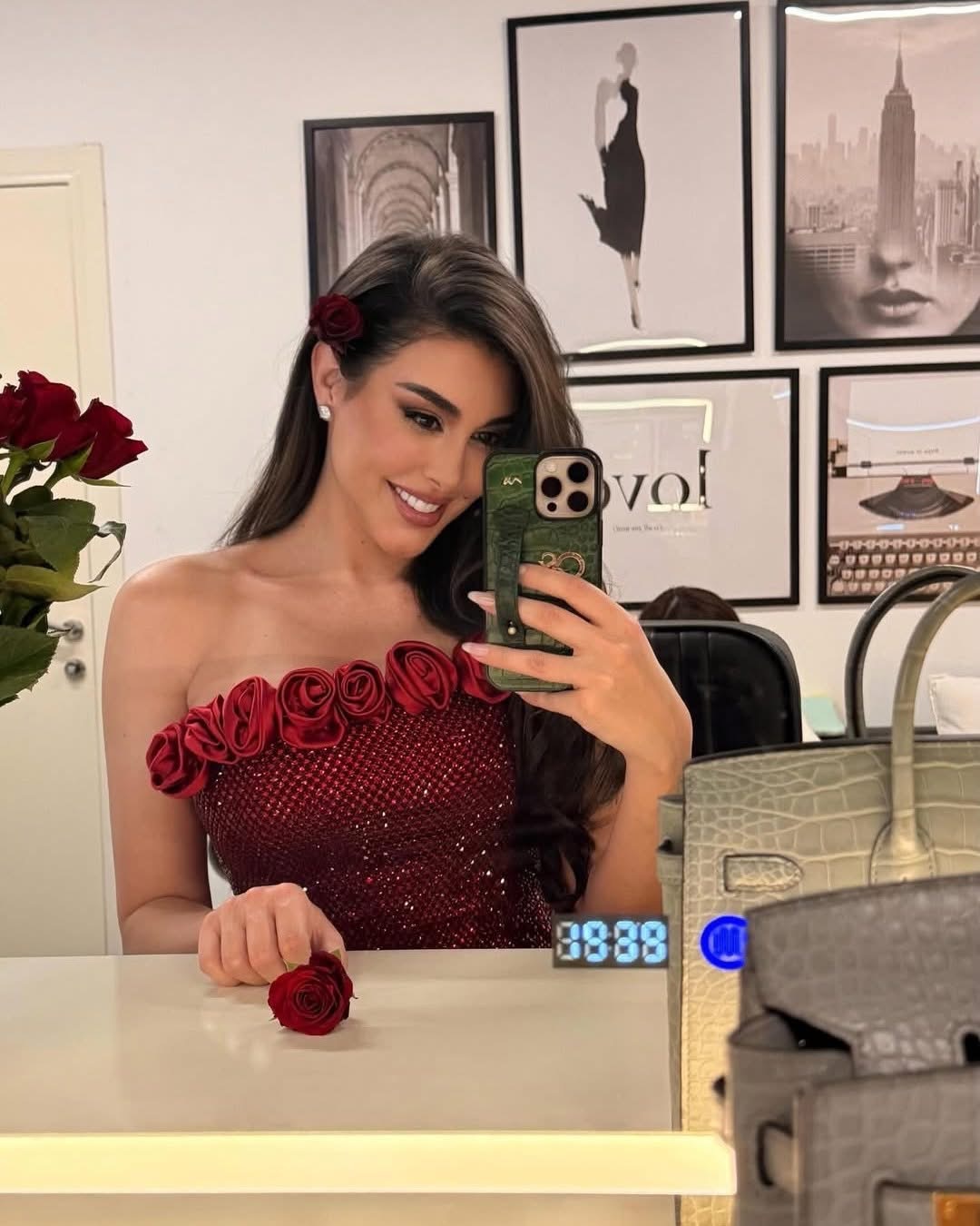 حيث نشرت صور أثناء تجهيزاتها وبعد ارتدائها لفستانين أنيقين، إحداهما باللون الأحمر والآخر ذهبي.