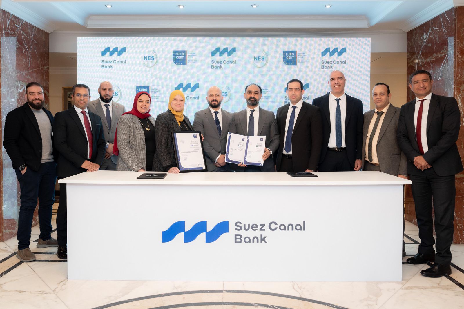 وشهدت الاحتفال حضور المهندس/ هاني فوزي، رئيس القطاع الاداري والهندسي ببنك قناة السويس، وأمينة عثمان، نائب رئيس مجلس إدارة شركة NES، إلى جانب لفيف من قيادات البنك.