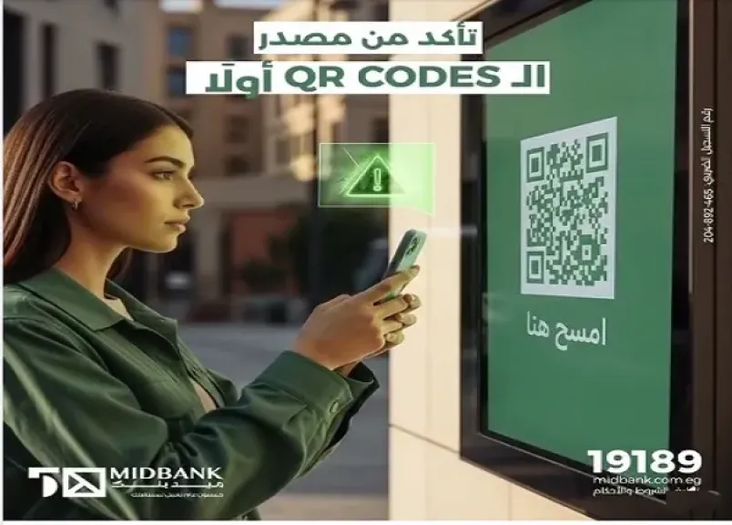 وطالب ميدبنك العملاء بتجنب مسح أي كود استجابة سريعة “QR Code” معلق في الأماكن العامة ومجهولة المصدر.