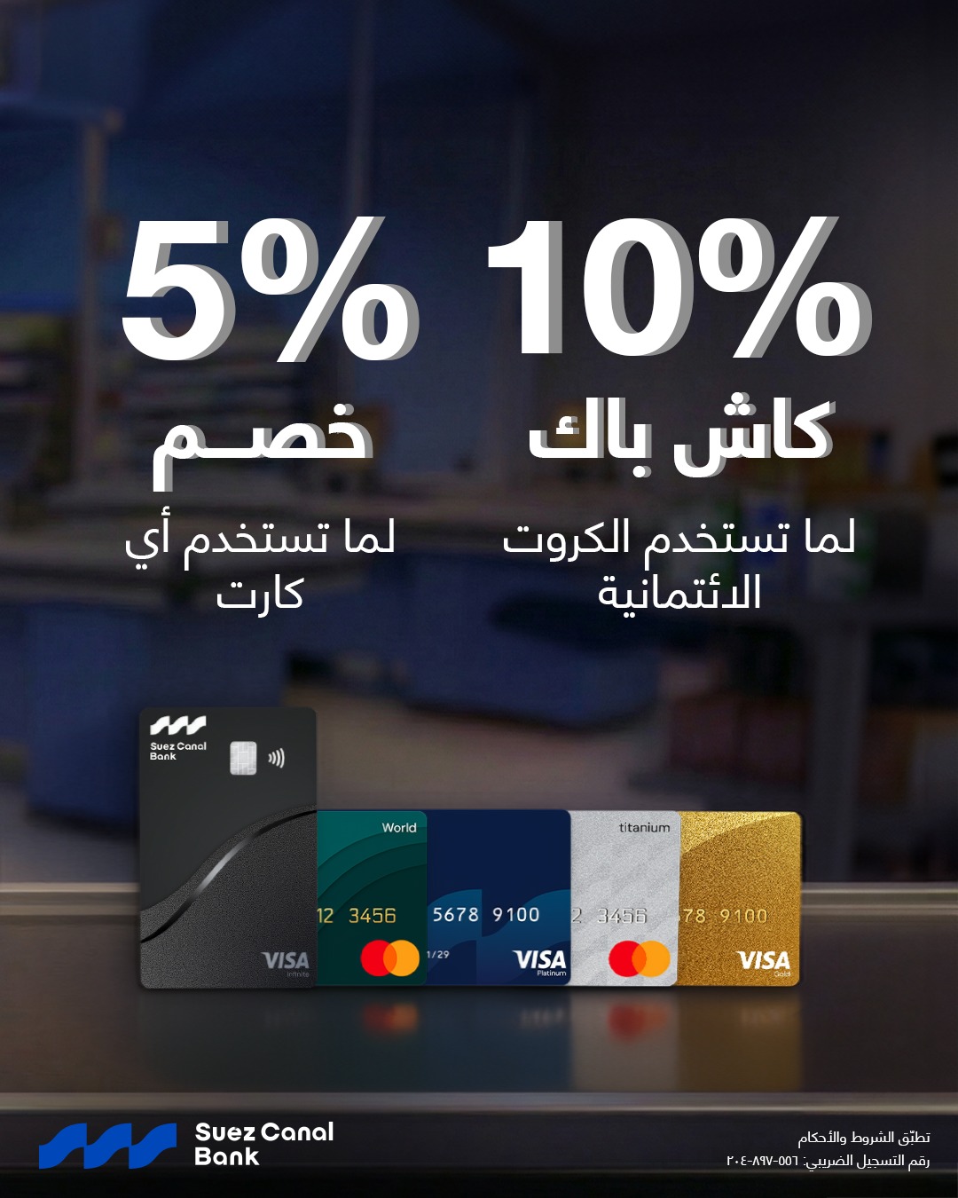 بنك قناة السويس يتيح 10% كاش باك على المشتريات من سوبر ماركت محمود الفار