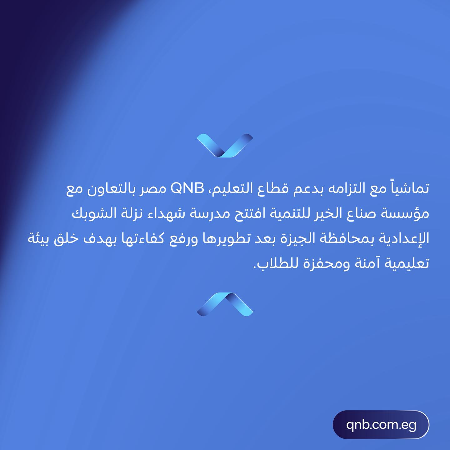 يأتي ذلك تماشياً مع التزام بنك QNB مصر بدعم قطاع التعليم وذلك بهدف خلق بيئة تعليمية آمنة ومحفزة للطلاب.