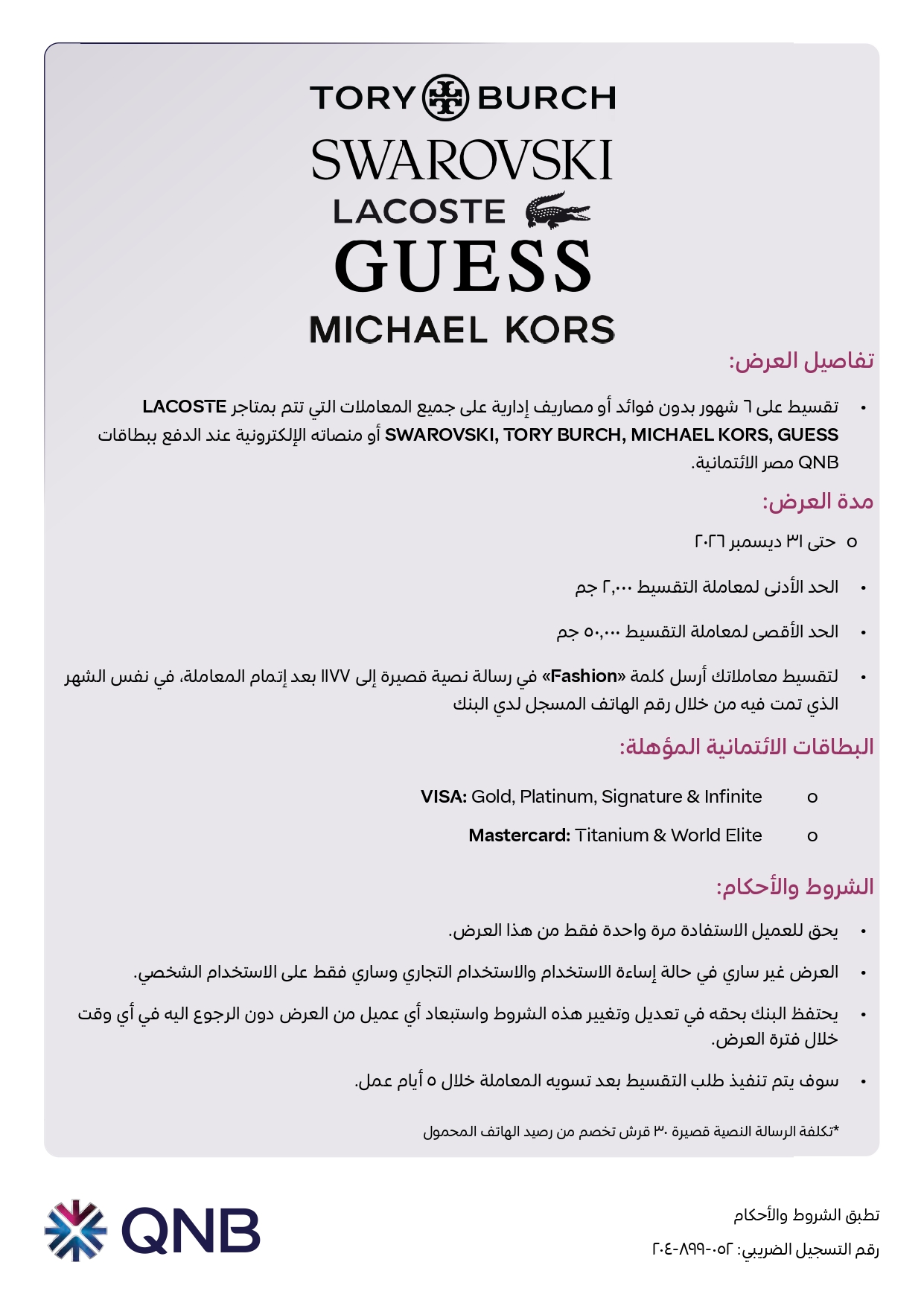 ويأتي هذا العرض في إطار حرص البنك على تقديم مزايا وعروض حصرية لعملائه، وتشجيع استخدام البطاقات الائتمانية في عمليات الشراء اليومية.