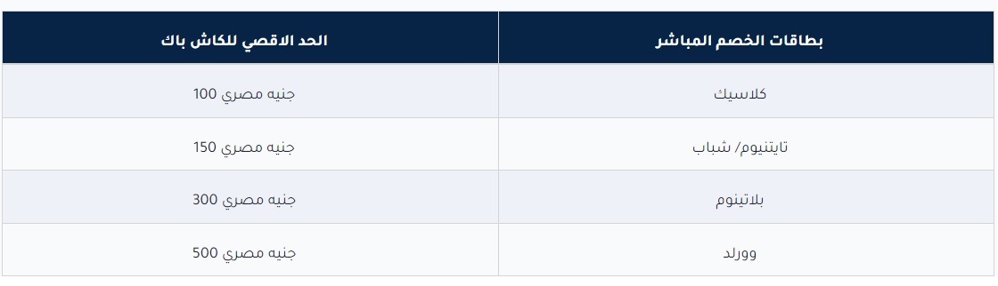– بطاقات الخصم المباشر: حاملي بطاقات كلاسيك، تايتنيوم، شباب، بلاتينوم و وورلد ماستركارد فقط هم المؤهلين للحصول على عرض الكاش باك.