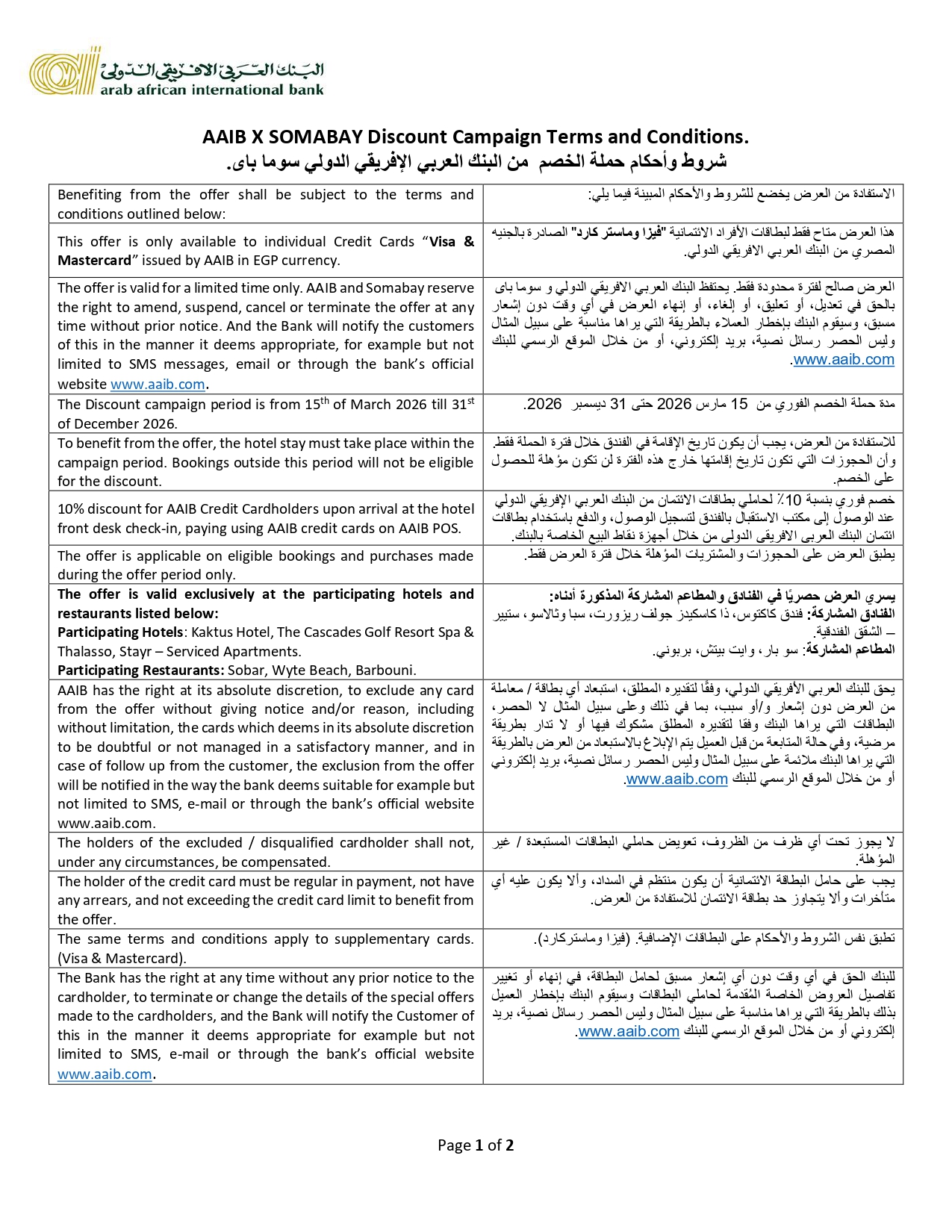 شروط وأحكام حملة الخصم من البنك العربي الافريقى الدولى لدى سوما باى: