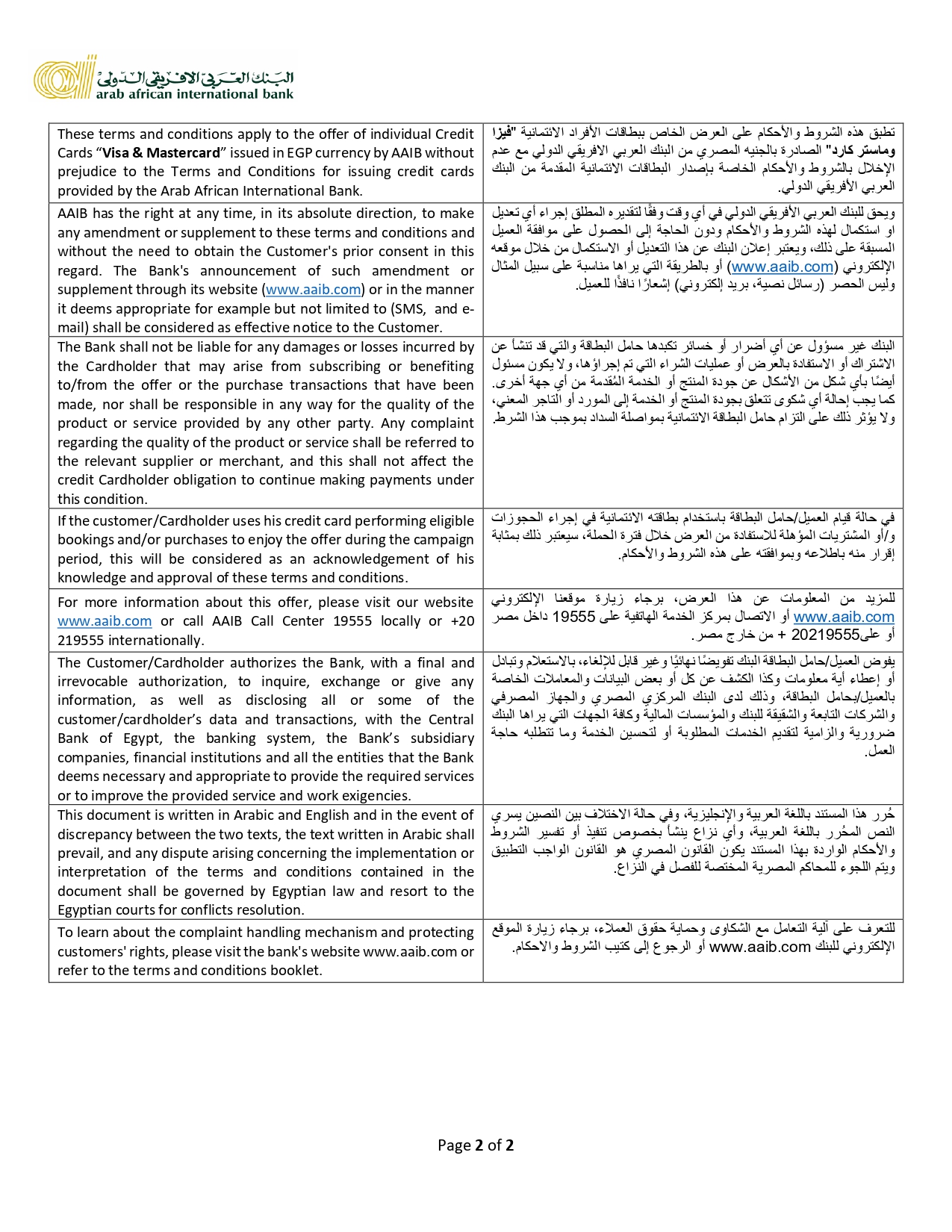 أعلن البنك العربى الافريقى الدولى AAIB ، عبر صفحته الرسمية على موقع التواصل الاجتماعي فيسبوك، عن أحدث عروض الخصومات للعملاء حاملي بطاقاته الائتمانية.