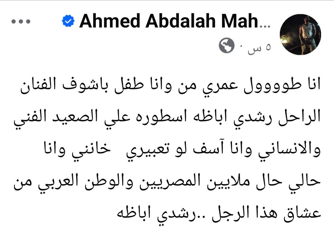 ونشر الفنان أحمد عبدالله محمود إعتذار رسمي عبر صفحته الرسمية على موقع التواصل الإجتماعي فيسبوك قال فيه : أنا طوووول عمري من وأنا طفل باشوف الفنان الراحل رشدي أباظة أسطورة على الصعيد الفني والإنساني وأنا آسف لو تعبيري خانني وأنا حالي حال ملايين المصريين والوطن العربي من عشاق هذا الرجل .. رشدي أباظة.