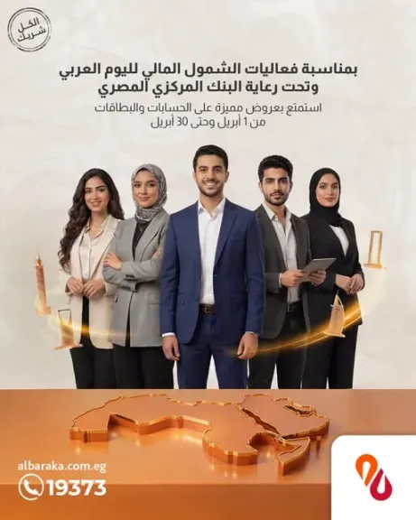 بنك البركة مصر يقدم باقة مميزة من الخدمات المجانية احتفالاً باليوم العربي للشمول المالي