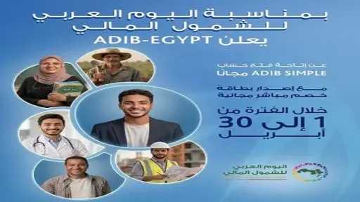 بمناسبة اليوم العربي للشمول المالي وتحت رعاية البنك المركزي المصري، يتيح بنك التعمير والإسكان لجميع العملاء الاستفادة من جميع منتجات الشمول المالي مجانًا طوال الفترة من 1 أبريل وحتى 30 أبريل 2026.