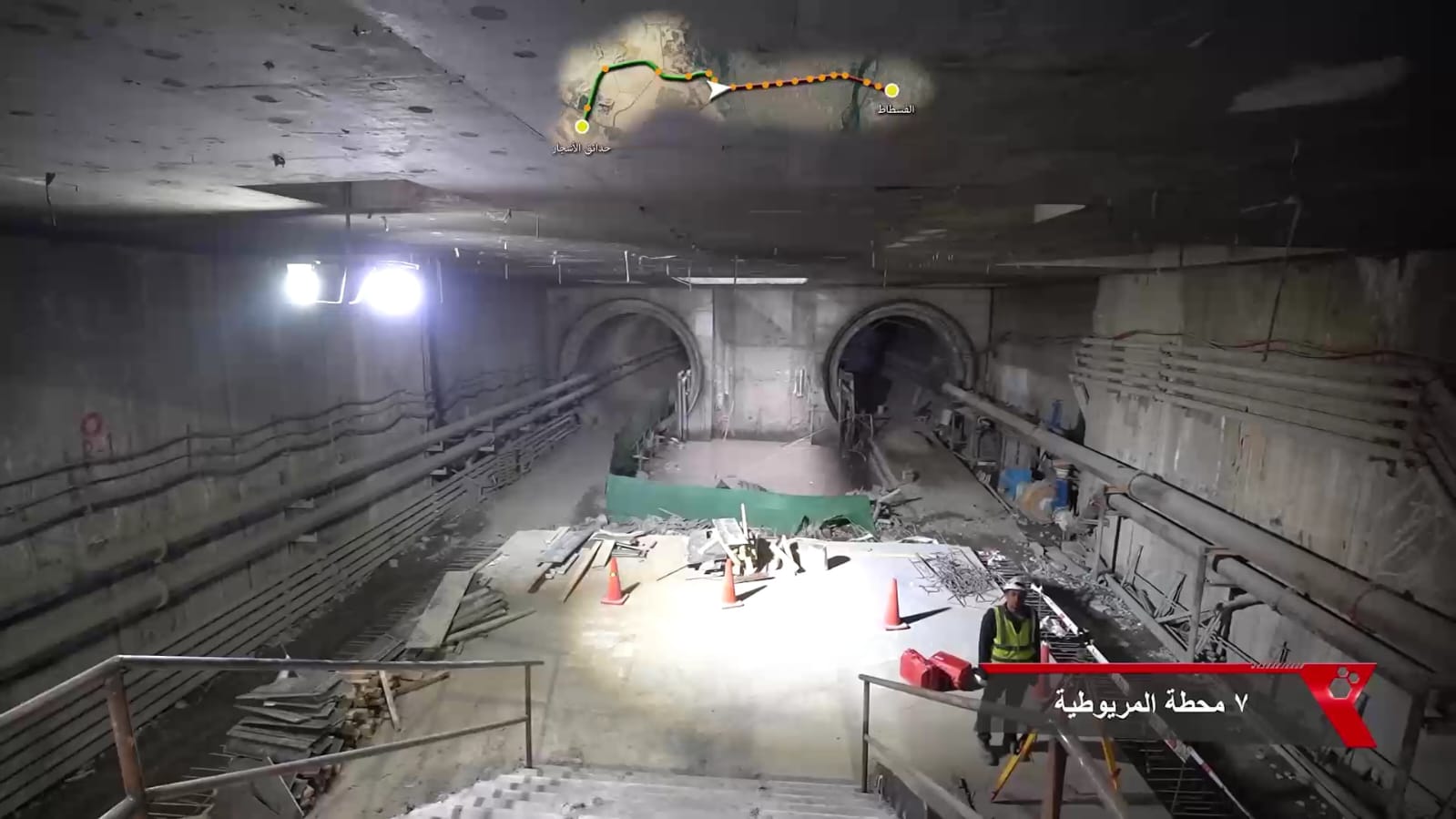 3- يجري حالياً تنفيذ الأعمال الإنشائية بالمرحلة الأولى بالمحطات كذلك أعمال الحفر النفقي و تتقدم معدلات تنفيذ أعمال الحفر النفقي للنفقين بالجزء الأول من المرحلة الاولى (نفق لكل إتجاه) بواسطة 4 ماكينات حفر نفقي (2 ماكينة لكل إتجاه ) حيث وصلت الماكينة الأولى الى محطة المتحف المصرى الكبير والثانية فى الطريق الى محطة الاهرامات والثالثة وصلت محطة مدكور والرابعة وصلت محطة الطالبية