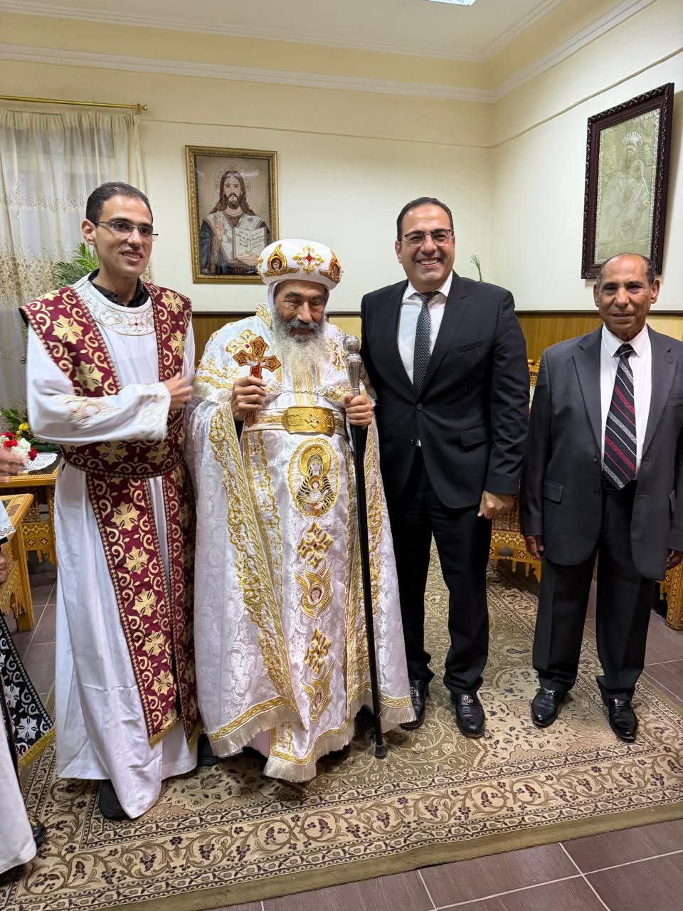 كما قام بتقديم التهنئة الي القس الدكتور بهاء راشد راعي الكنيسة الانجيليه، كما قدم التهنئة الي القس مينا حلمي راعي الكنيسة الاسقفية.