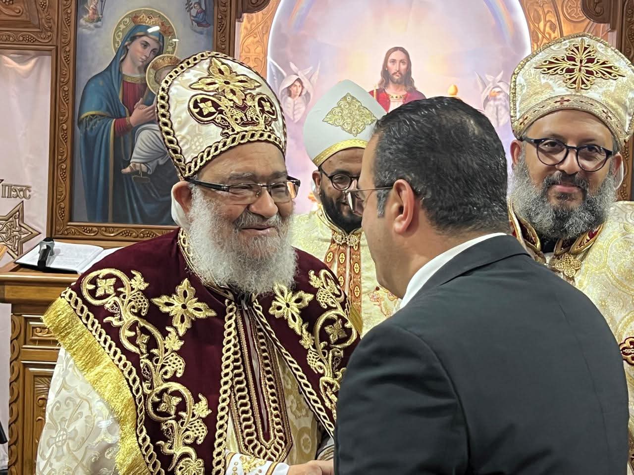 وقدم أمين الامانة المركزية للمصريين بالخارج بحزب مستقبل وطن التهنئة لنيافة الانبا تادرس مطران بورسعيد وتوابعها كما قدم التهنئة الي مطران كنيسة الروم الارثوذكس ببورسعيد