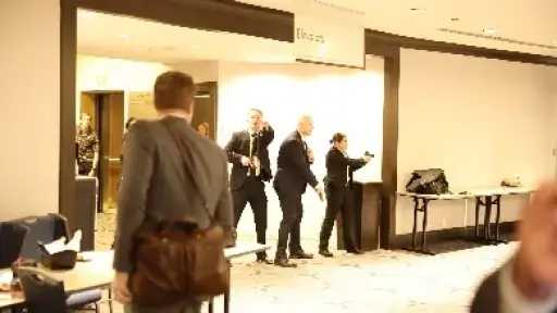 ودفع الحادث أفراد جهاز الخدمة السرية إلى إجلاء ترامب وأعضاء بارزين من إدارته إلى خارج القاعة، في فندق هيلتون واشنطن.