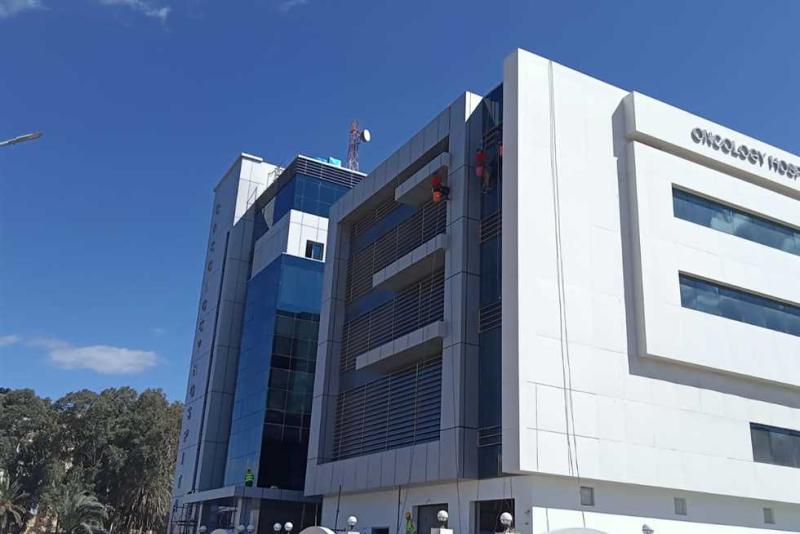 وأضاف عماره، أن تشغيله سيوفر رعاية متكاملة لكل حالات الأورام فى دلتا مصر، مؤكدا أن المشروع يقع فى المنطقة المقابلة للمعهد الدينى، والمدرسة الزراعية للبنات بحى شرق مدينة كفر الشيخ، على مساحة 8876 م2، ويتضمن مبنيين "أ" بمسطح 1400م2، و"ب" بمسطح 2000م2، وتم تجهيزه بجميع الأجهزة الطبية الحديثة والخاصة بعلاج والكشف عن الأورام والعلاج الاشعاعى، وأجهزة الأشعة المتطورة ومعامل التحاليل، والأقسام الداخلية، وغرف العمليات، أنه تم الانتهاء من الإنشاءات الخرسانية بنسبة 100%، بينما وصلت نسبة أعمال التشطيبات والكهرباء والكهروميكانيك إلى 100%.