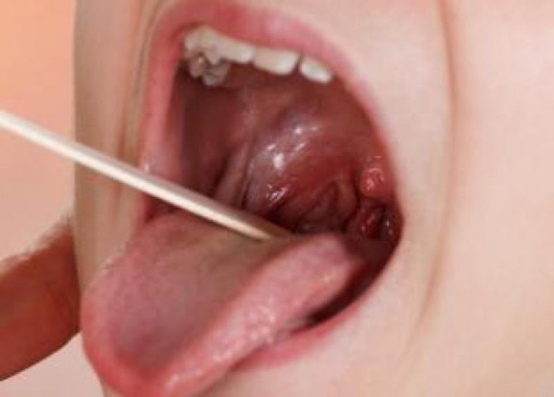 ظهور طبقة بيضاء أو صفراء أو ظهور لطخات على اللوزتين