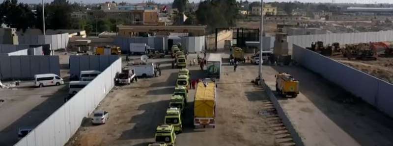 يقدم "هي وهما" بثا مباشرا، لعبور سيارات الإسعاف وسيارات المساعدات الإنسانية إلى قطاع غزة، عبر بوابة معبر رفح.