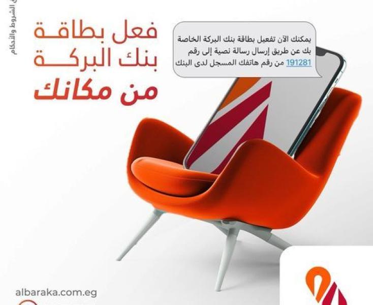 أعلن بنك البركة عبر صفحته الرسمية على موقع التواصل الاجتماعي فيسبوك عن خدمة جديدة يقدمها لعملائه حيث يتيح البنك إمكانية تفعيل بطاقة بنك البركة الخاصة بالعميل عن طريق إرسال رسالة نصية إلى رقم 191281 من رقم الهاتف المسجل لدى البنك.