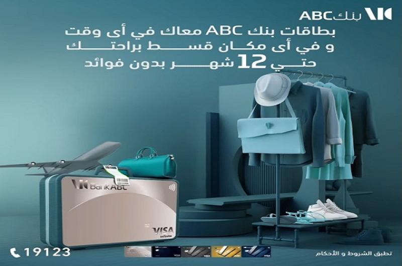 ويتيح البنك للعملاء تقسيط المشتريات بدون فوائد حتى 12 شهراً عند الدفع ببطاقات ABC الائتمانية.