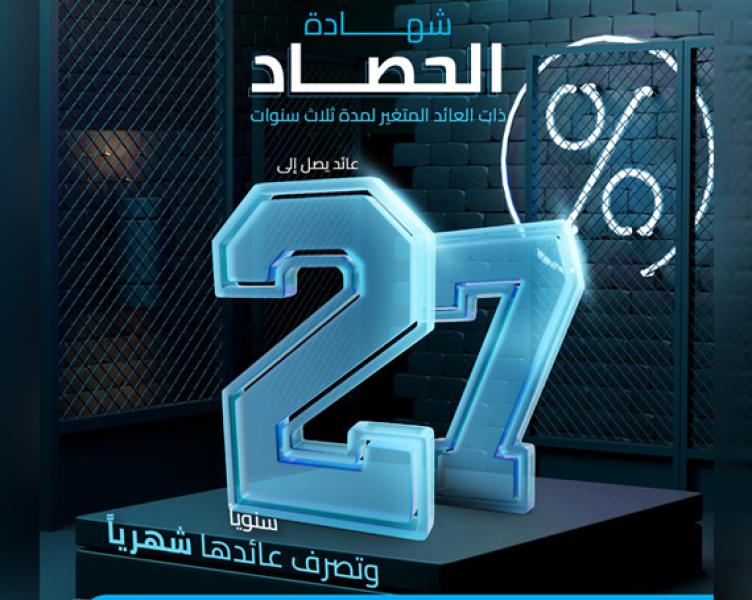 يقدم بنك قناة السويس شهادة الحصاد ذات العائد المتغير بالجنيه المصري ويصل سعر العائد على الشهادة إلى 27%، ويمكن الاختيار بين دورية صرف العائد اليومية أو الشهرية.